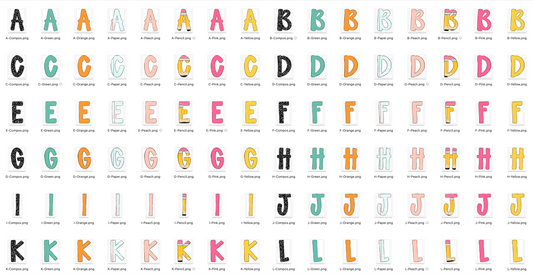Back To School Doodle Alpha Bundle - Set of 8 Alphabets