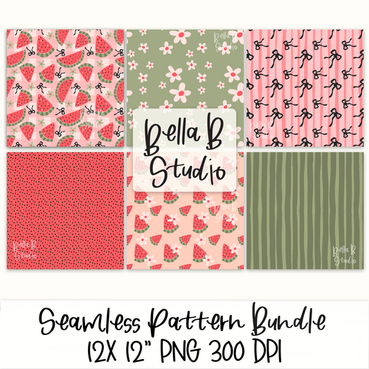 Whimsical Watermelon Seamless Digital Paper Bundle - PNG File
