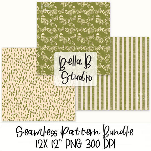 Green Distressed Butterfly Seamless Digital Paper BUNDLE - PNG File