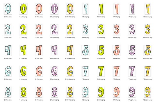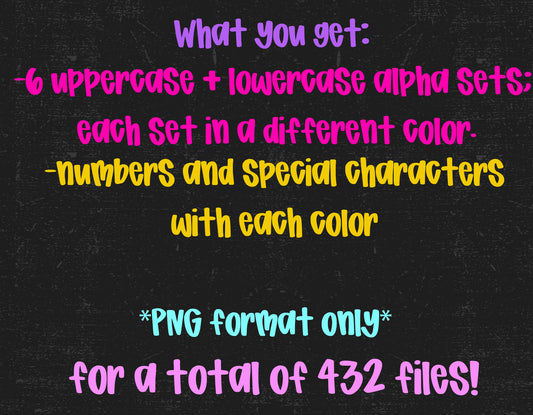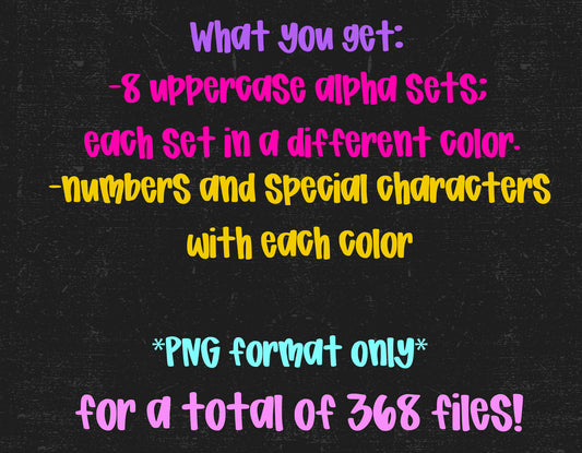 Preppy Neon Doodle Alpha Bundle - Set of 8 Alphabets