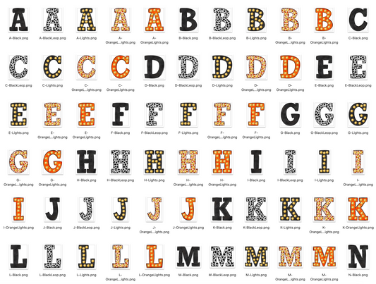 Black and Orange Spirit Marquee Varsity Alpha Bundle - Set of 5 Alphabets