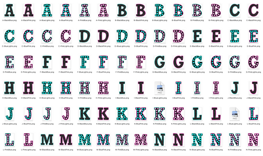 Neon Varsity Alpha Bundle - Set of 8 Alphabets
