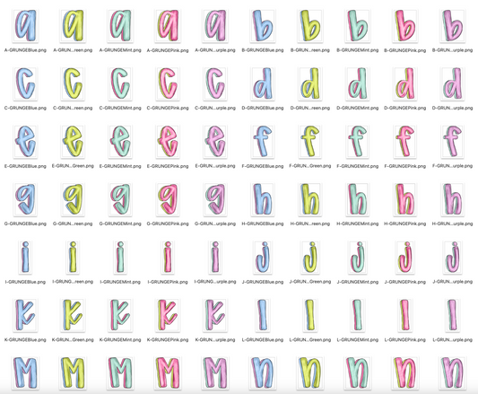 Spring Grunge Doodle Alpha Bundle - Set of 5 Alphabets