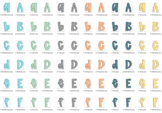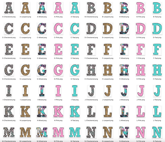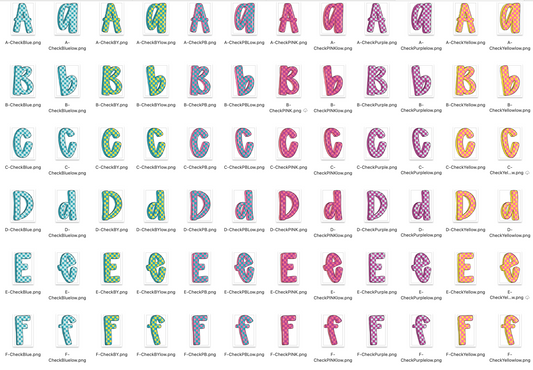 Preppy Neon Checker Doodle Alpha Bundle - Set of 6 Alphabets