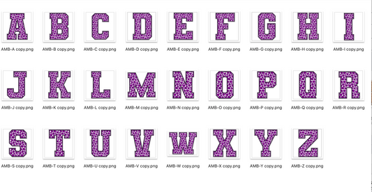 Faux Embroidered Alphabet Set - PURPLE Leopard