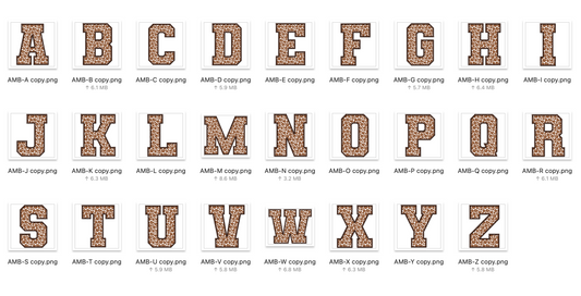 Faux Embroidered Alphabet Set - BROWN Leopard