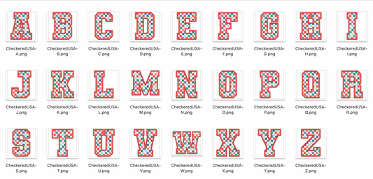 Faux Embroidered Alphabet Set - Checkered USA