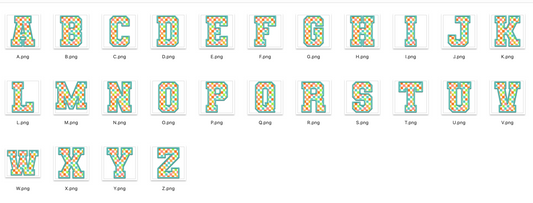 Faux Embroidered Alphabet Set - Bright Checkered