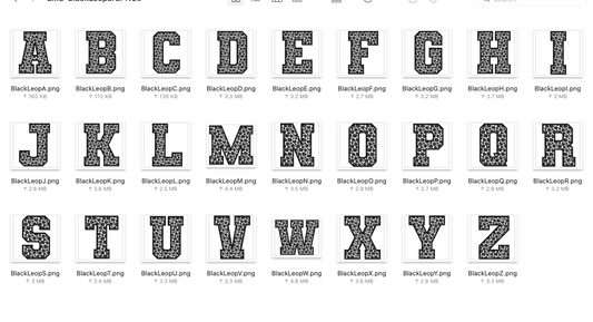 Faux Embroidered Alphabet Set - BLACK Leopard