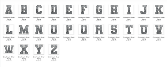 Faux Embroidered SEQUIN Alphabet Set - SILVER