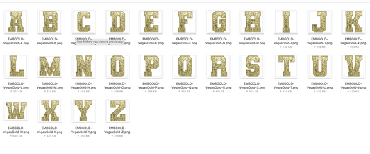 Faux Embroidered SEQUIN Alphabet Set - VEGAS GOLD