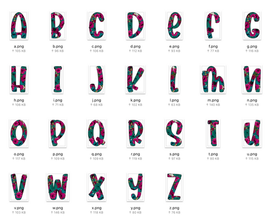 Faux Embroidered Alphabet Set - Dark Green Leopard