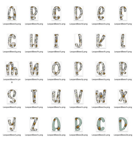 Leopard and Bees Doodle Alpha Set - SET OF 3