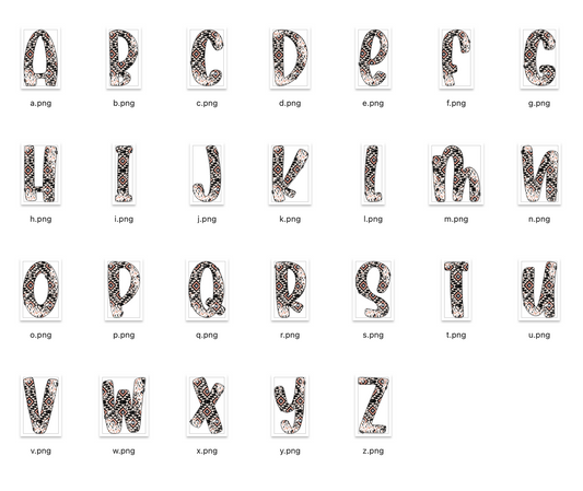 Faux Embroidered Alphabet Set - GREY LEOPARD
