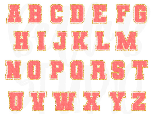 Faux Chenille Alphabet Set CORAL / BLACK GLITTER