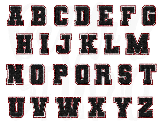 Faux Chenille Alphabet Set BLACK / RED GLITTER