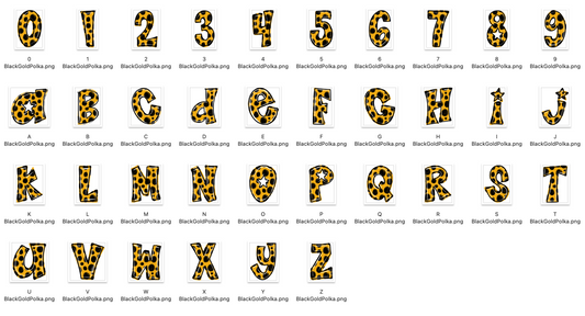 Black Vegas Gold Spirit Strokes Doodle Alpha Bundle - Set of 5 Alphabets