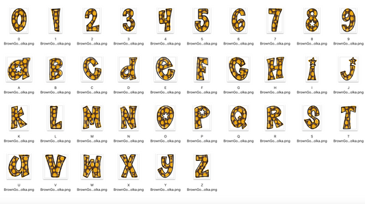 Brown Gold Spirit Strokes Doodle Alpha Bundle - Set of 5 Alphabets