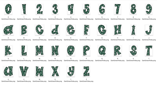 Forest Green Spirit Strokes Doodle Alpha Bundle - Set of 5 Alphabets