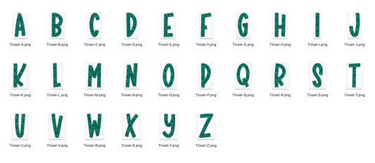 Faux Tinsel Alphabet Set - Green
