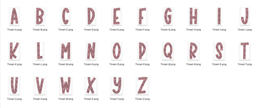 Faux Tinsel Alphabet Set - Pink