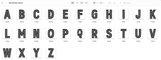 Faux Stitch Alphabet Set - Polka Dot Black
