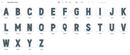 Faux Stitch Alphabet Set - Polka Dot Blue
