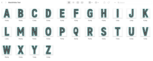 Faux Stitch Alphabet Set - Polka Dot Teal