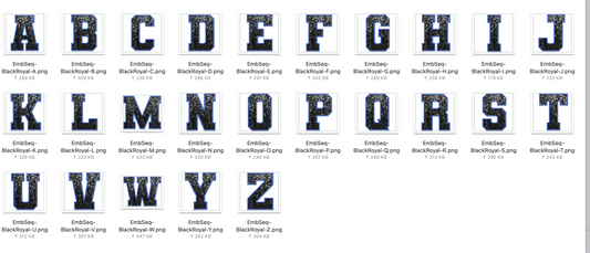 Faux Embroidered SEQUIN Alphabet Set - BLACK/Royal