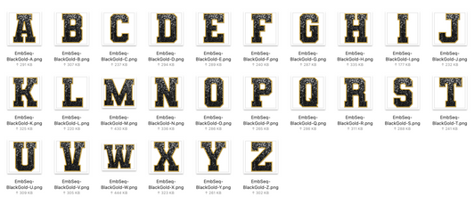 Faux Embroidered SEQUIN Alphabet Set - BLACK/GOLD