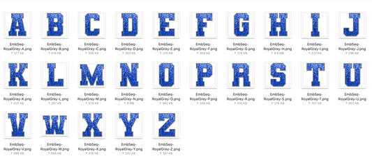 Faux Embroidered SEQUIN Alphabet Set - Royal/Grey