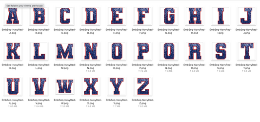 Faux Embroidered SEQUIN Alphabet Set - Navy/Red