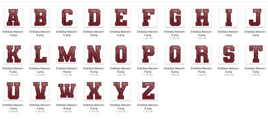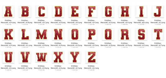 Faux Embroidered SEQUIN Alphabet Set - Deep Maroon