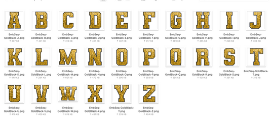 Faux Embroidered SEQUIN Alphabet Set -Gold/Black