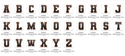 Faux Embroidered SEQUIN Alphabet Set - Black/Orange