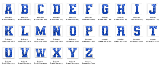 Faux Embroidered SEQUIN Alphabet Set -Royal/White