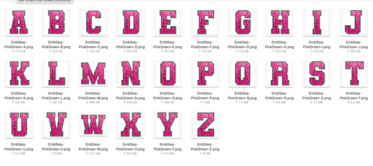 Faux Embroidered SEQUIN Alphabet Set - Pink/Green