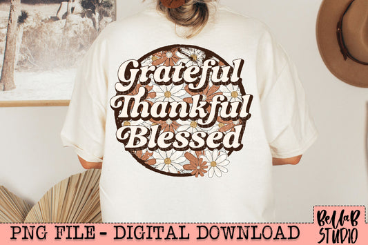Grateful Thankful Blessed Vintage Retro PNG Design