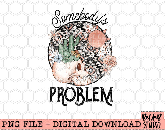 Somebody's Problem Western Cactus Skull PNG Sublimation Design