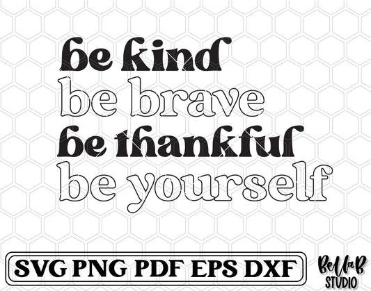 Be Kind Be Brave Be Thankful Be Yourself SVG File