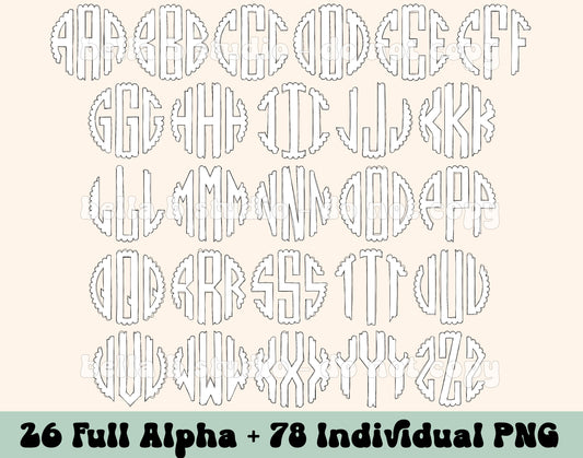 Fillable Blank Scalloped Monogram Alpha Set - Make Your Own Alpha Set