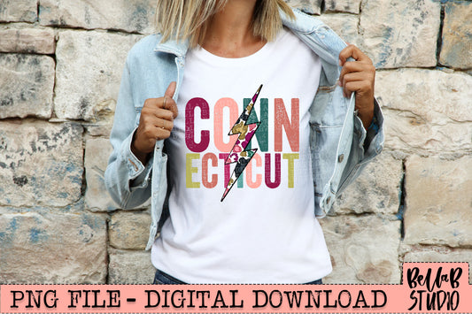 CONNECTICUT Bright Leopard Bolt Sublimation Design