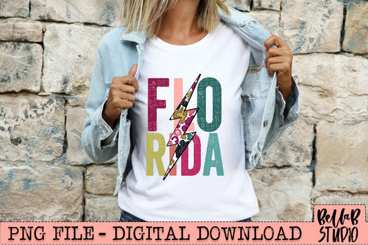 FLORIDA Bright Leopard Bolt Sublimation Design
