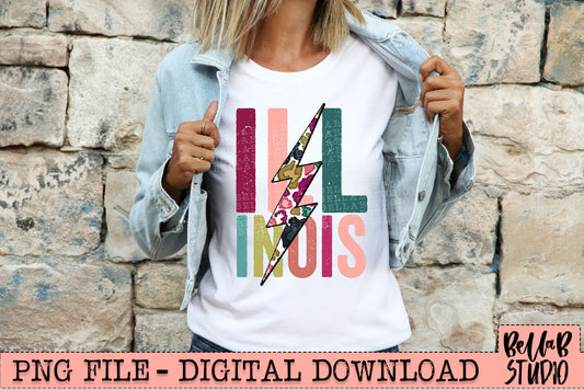 ILLINOIS Bright Leopard Bolt Sublimation Design
