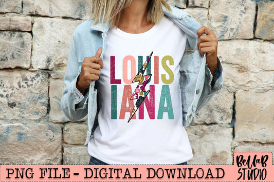 LOUISIANA Bright Leopard Bolt Sublimation Design