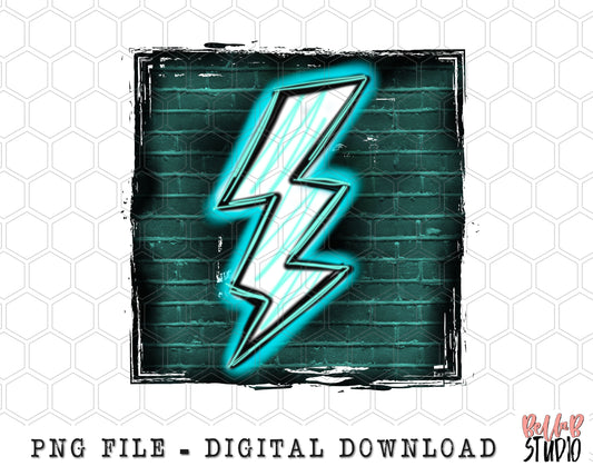 Blue Neon Lightning Bolt Brick Wall Sublimation Design
