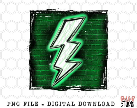 Green Neon Lightning Bolt Brick Wall Sublimation Design