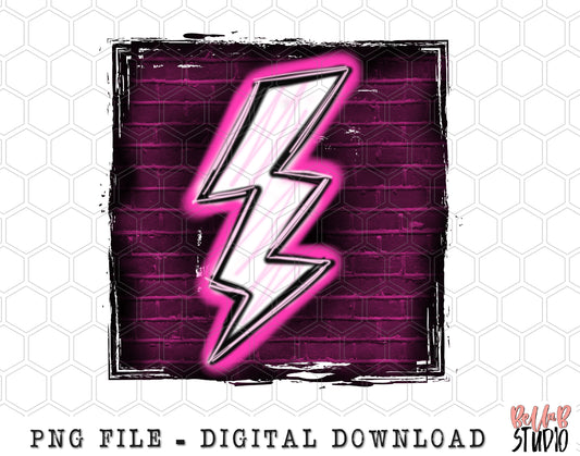 Pink Neon Lightning Bolt Brick Wall Sublimation Design