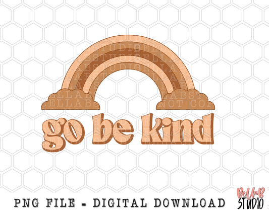 Go Be Kind Retro Rainbow PNG Sublimation Design