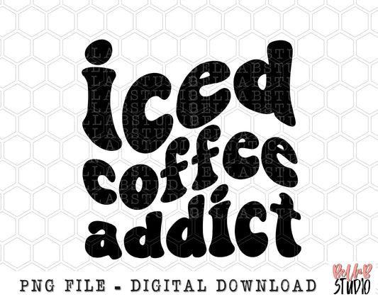 Iced Coffee Addict Wavy Retro PNG Sublimation Design